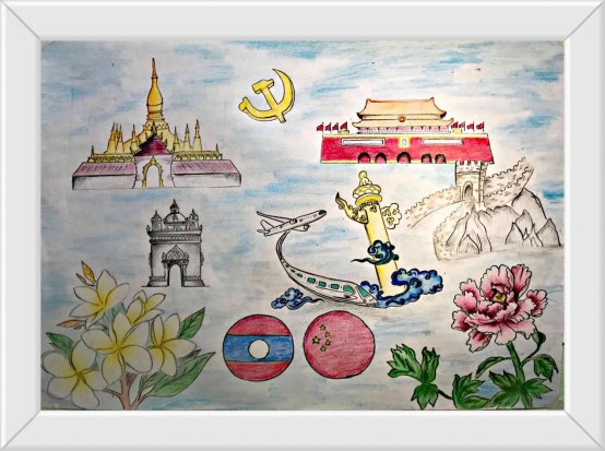 大赛获奖作品《中老铁路》内容意为:中老友谊,一路芬芳。中老同为社会主义国家是山水相连的友好邻邦,不久之后“中老铁路”开通在即,它拉进的不止是两邻邦的国土距离,也为两国人民带来便利,更为互学互鉴,增进彼此友谊做出积极贡献。