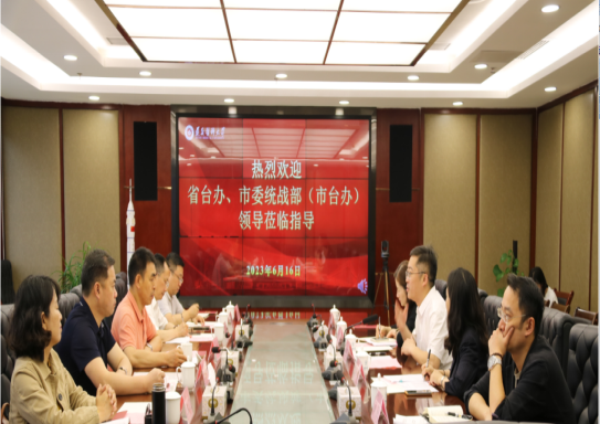 6月16日,省台办副主任李伟刿一行在市委统战部副部长、市台办主任彭红等陪同下,莅临我校调研座谈。学校党委委员、组织部长、统战部长郭宇亮、港澳台事务办公室主任蒋熠、统战部副部长李菲、招生就业处副处长薛亮等陪同调研。