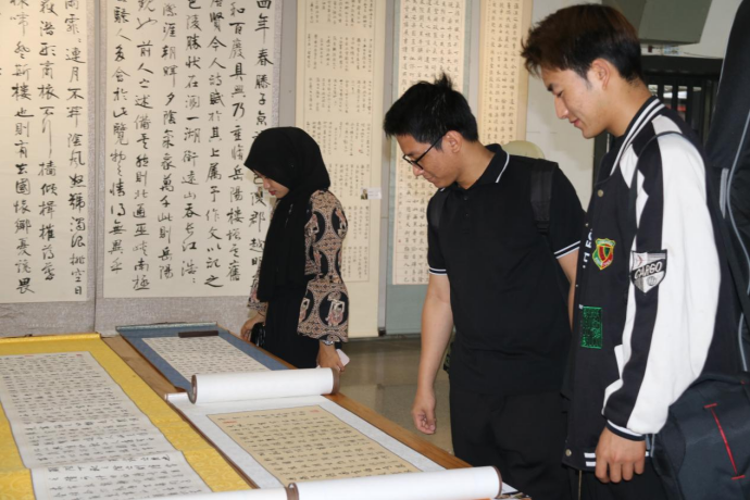 国际学生参观中国书法
