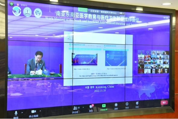 11月20日,“中国-南亚卫生健康论坛暨第2届南亚东南亚医学教育与医疗卫生联盟大会”在昆明召开。作为南亚东南亚医学教育与医疗卫生联盟创始成员单位,我校党委副书记,校长刘建国应邀线上出席大会。国际合作处、教务处、研究生院、口腔医学院、公共卫生学院、附属医院医学影像科、附属医院泌尿外科等部门负责人在bw必威西汉姆联分会场参加会议。