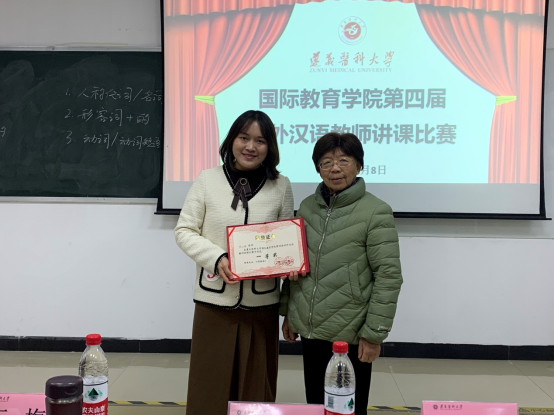 参赛教师讲授内容主要有《实用医学汉语》、《HSK5级培训》、《汉语阅读》等课程。经过精彩的角逐,陈万瑜老师获得一等奖,陈鏇霖老师和李雪老师获得二等奖,付蛟蛟和周昌雄老师获得三等奖。