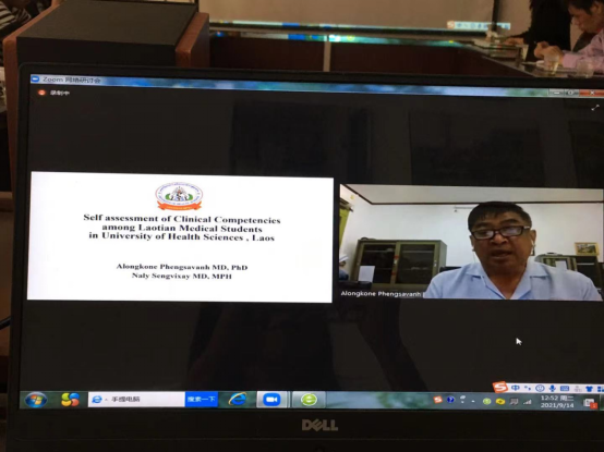 会议由新加坡国立大学教授Dow Rhoon KOH主持,印度尼西亚大学医学院医学教育部主任ArdiFindyartini博士作了题为“新常态下的教学评估 —在资源有限情况下教学评估工作所面临挑战”的报告,分享了后疫情时代,医学高等教育评估工作的现状和提高教育评估工作的思路。Ardi博士指出要积极引导学生在新常态下克服困难,努力提升自身专业技能,做好应对未来挑战的准备。老挝健康科学大学医学院副院长AlongkonePhengsavanh作了题为“老挝健康科学大学医学院学生临床技能自我评价”的报告,分享了老挝健康科学大学医学院学生学习课程以及学生在疫情期间对临床技能进行自我评价的影响因素和评价方法,同时指出未来医学高等教育所面临的挑战。会议期间,大家就相关热点问题进行了讨论。(撰稿:张丽云;摄影:郑丹黎)