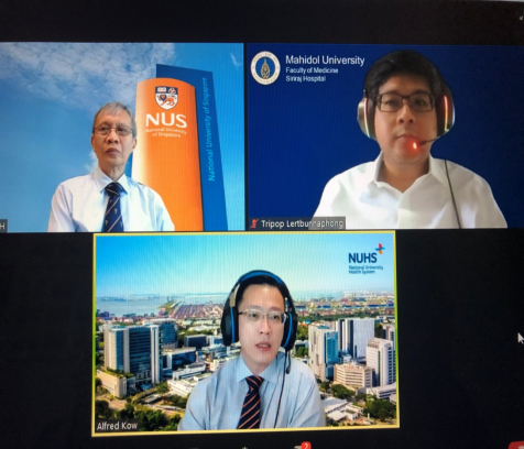 会议由新加坡国立大学教授Dow Rhoon KOH主持,新加坡国立大学杨潞龄医学院副院长Alfred Kow Wei Chieh作了题为“新冠疫情催化下的技术辅助医学教育”的报告,他分享了如何利用科学技术增强在医学教育数字化方面的体验,为确保学生在后疫情时代下的线上同步学习建立了牢固的基础。泰国玛希隆大学西里拉吉医院副院长Tripop Lertbunnaphong作了题为“疫情时代的新教学方法:以西里拉吉医院为例”的报告,分享了在疫情防控期间,学校通过视频会议和学习管理系统为学生创造了线上同步和异步的学习环境,为临床专业知识的学习提供了技术保障,并通过改善和创新虚拟仿真教学提高学生的临床技能。会议期间,大家就相关热点问题进行了讨论。(撰稿:张丽云/ 陈鏇霖;摄影:吴开其)