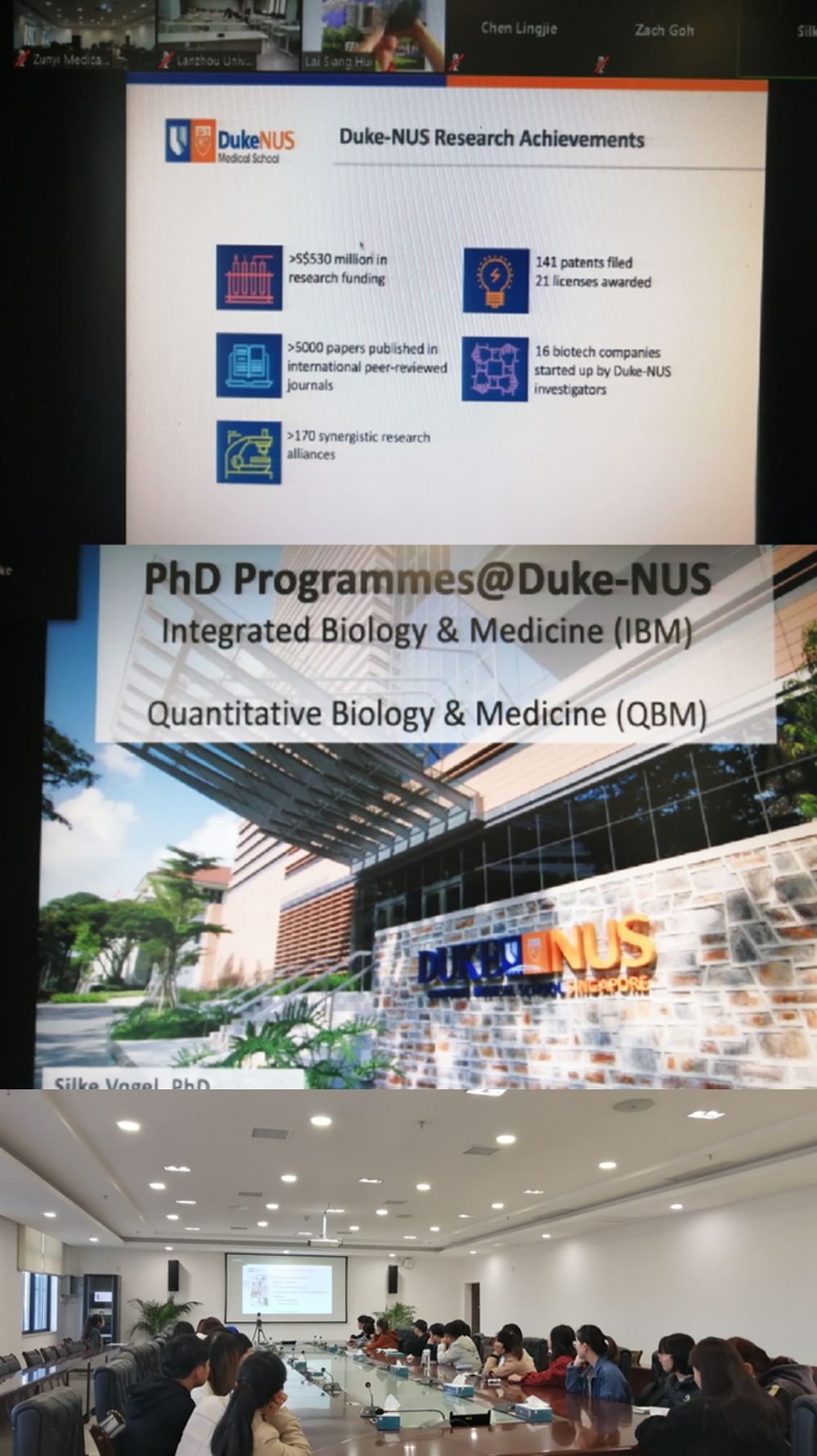 为进一步促进我校研究生培养国际化,推动我校“国家建设高水平大学公派研究生项目”申报工作,11月14日上午,国际合作处联合研究生院组织来自临床学院、基础医学院、公共卫生学院、护理学院等院系有海外留学计划的30余名硕士研究生,参加了由国家留学基金委举办的2020年国际研究生奖学金信息说明会(杜克-新加坡国立大学医学院专场),会议采取线上视频形式举办。