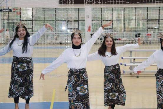 上午10点,排球友谊赛在国际学生的歌舞表演中拉开帷幕。来自塔吉克斯坦、印度尼西亚、老挝、蒙古国的国际学生以各自传统舞蹈表演为友谊赛暖场,比赛在热烈的气氛中展开。