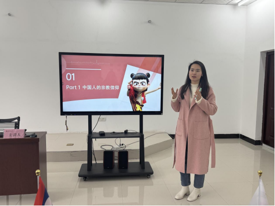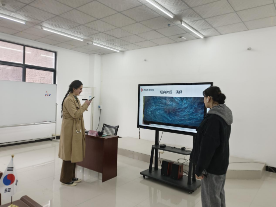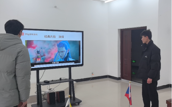 付蛟蛟首先围绕本次汉语角活动主题“哪吒”背后的中国文化进行了主题内容讲座,其中对中国的宗教信仰进行了介绍,并以浅显易懂的方式讲述了电影“哪吒”背后蕴含的儒家、道家思想,最后通过欣赏影视配音片段,让学生们演绎电影《哪吒1》里的精彩片段,熟悉电影内容的同时也锻炼了汉语表达能力。
