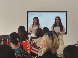 其次,中国学生朗诵了《再别康桥》,国际学生们则分组用中英文对照朗诵《乡愁》《静夜思》等经典诗作,共享诗词韵律之美。接着,国际学生介绍并朗诵了各自国家的诗歌,如塔吉克斯坦的《妈妈》、蒙古国的《我出生在何方》、印度尼西的《不要放弃》等等,促进了多元文化的交流互鉴。